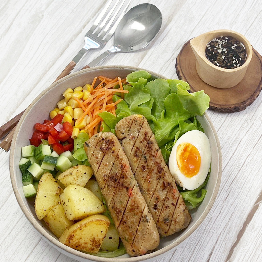 เราเชื่อใน “โภชนาการที่สมดุล” จึงเลือกใช้เนื้อไก่ที่มีโปรตีนสูง ผสมข้าวกล้องและผักต่างๆ ปรุงรสชาติให้กลมกล่อม ไม่จืด